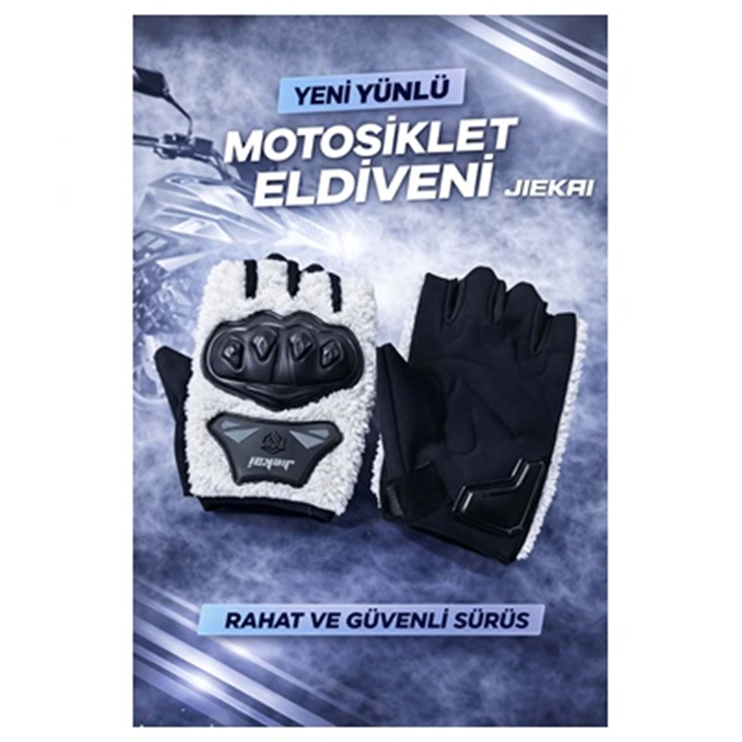 ELDİVEN KORUMALI PARMAKSIZ PELUŞLU BEYAZ L BEDEN